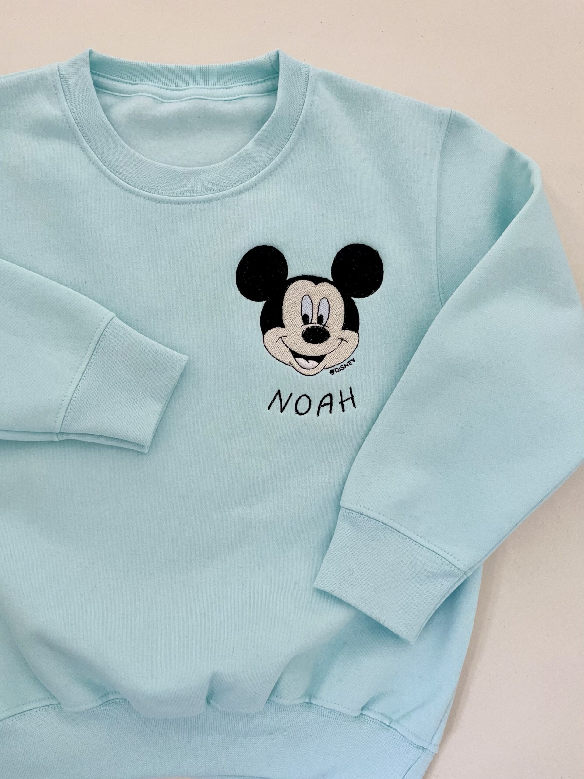 Seafoam Blue Mickey Personalised Crew Neck Sweatshirt – Embroidered
