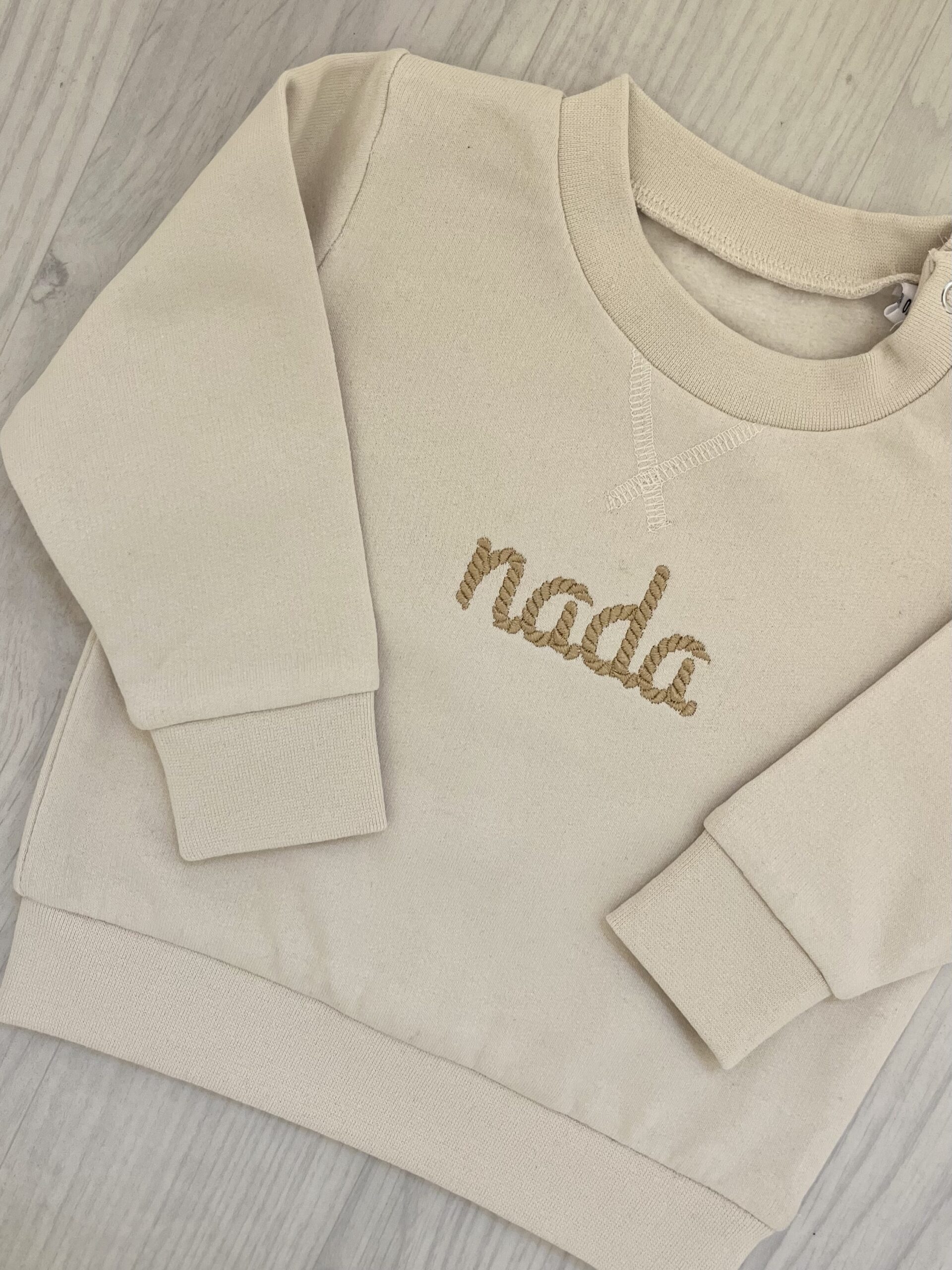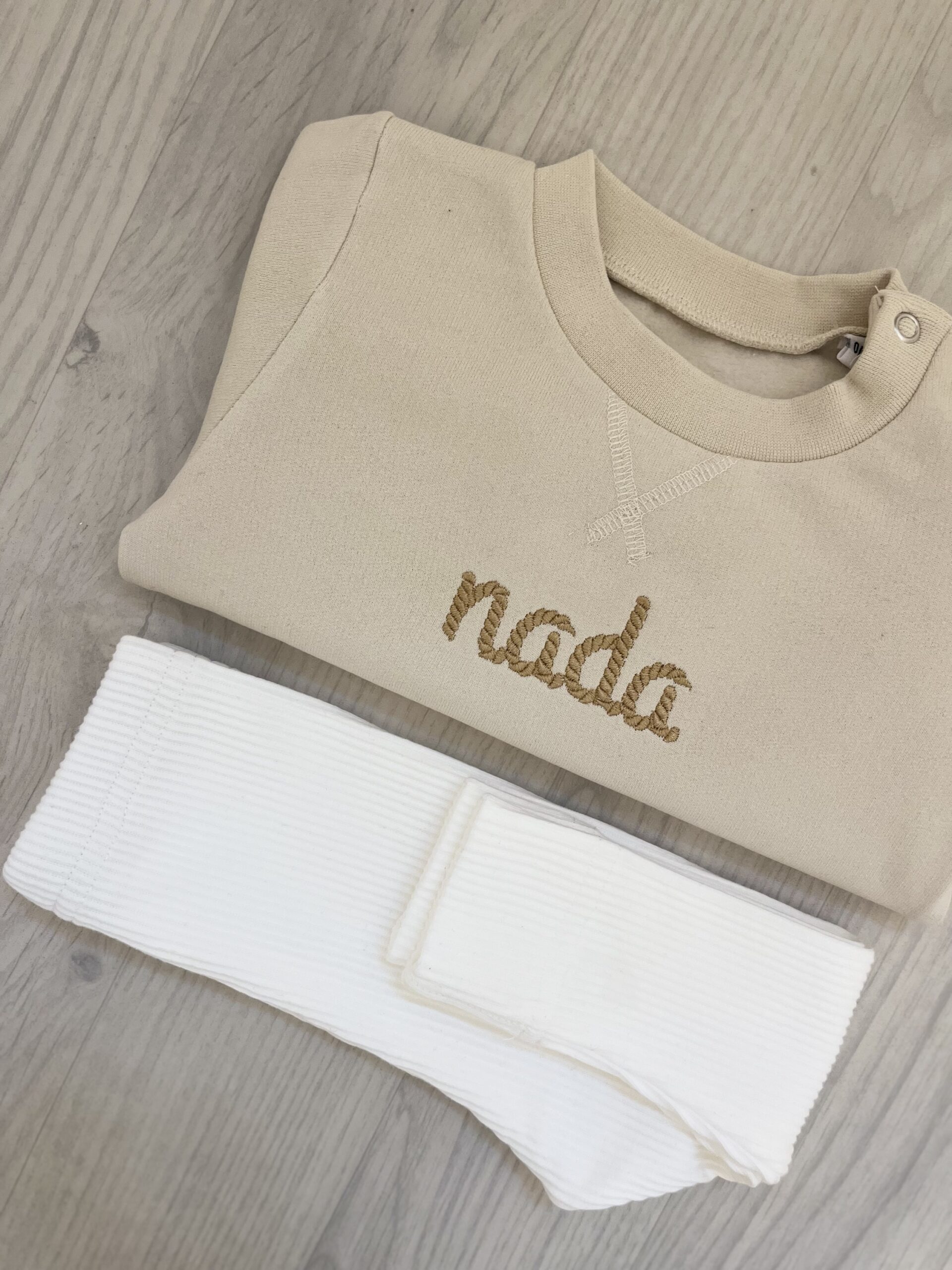 Please email orders@newonesclothing.co.uk with the thread colour. Options are – bronze, cream or grey. Alternatively you can add the thread colour to the name box.